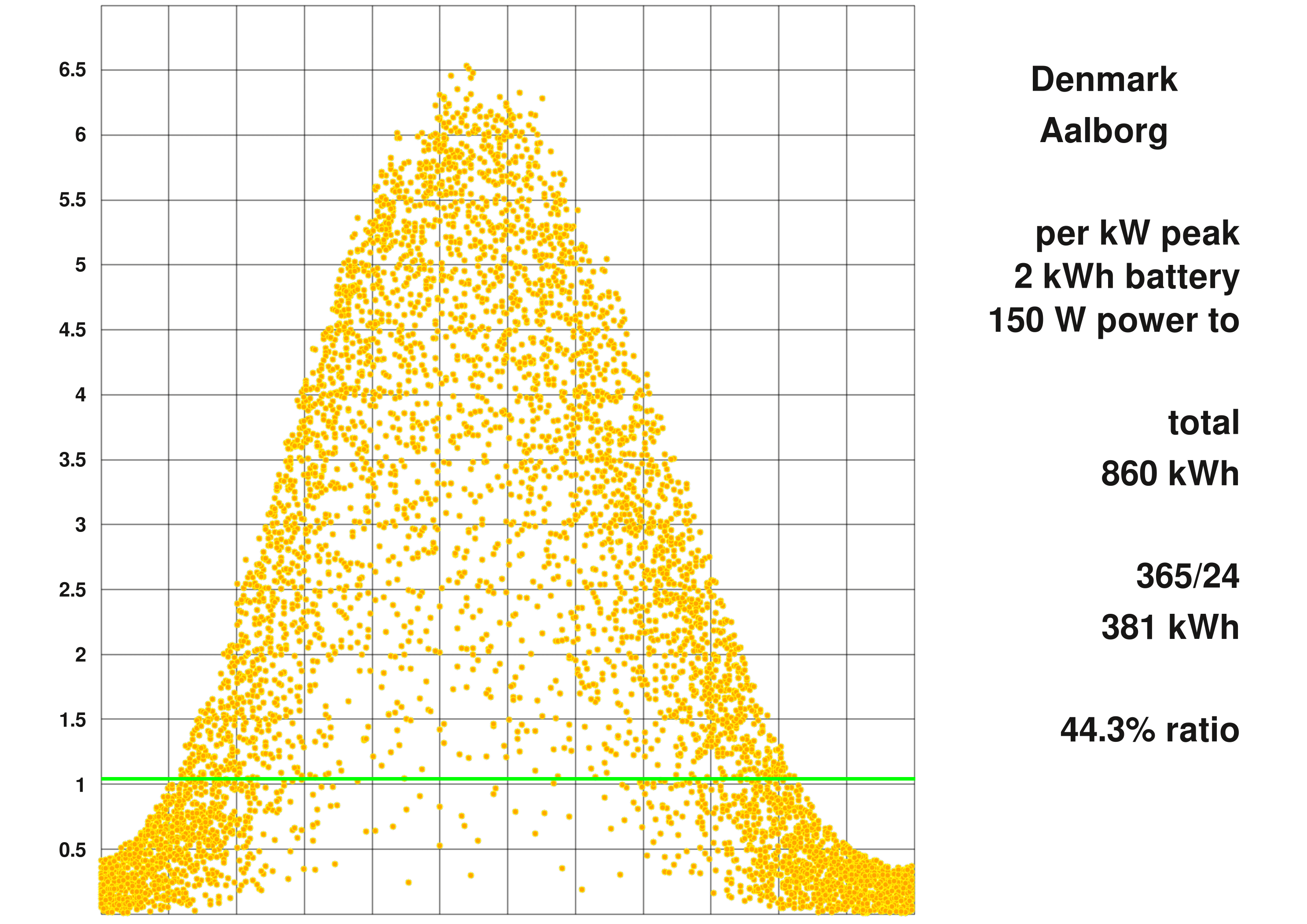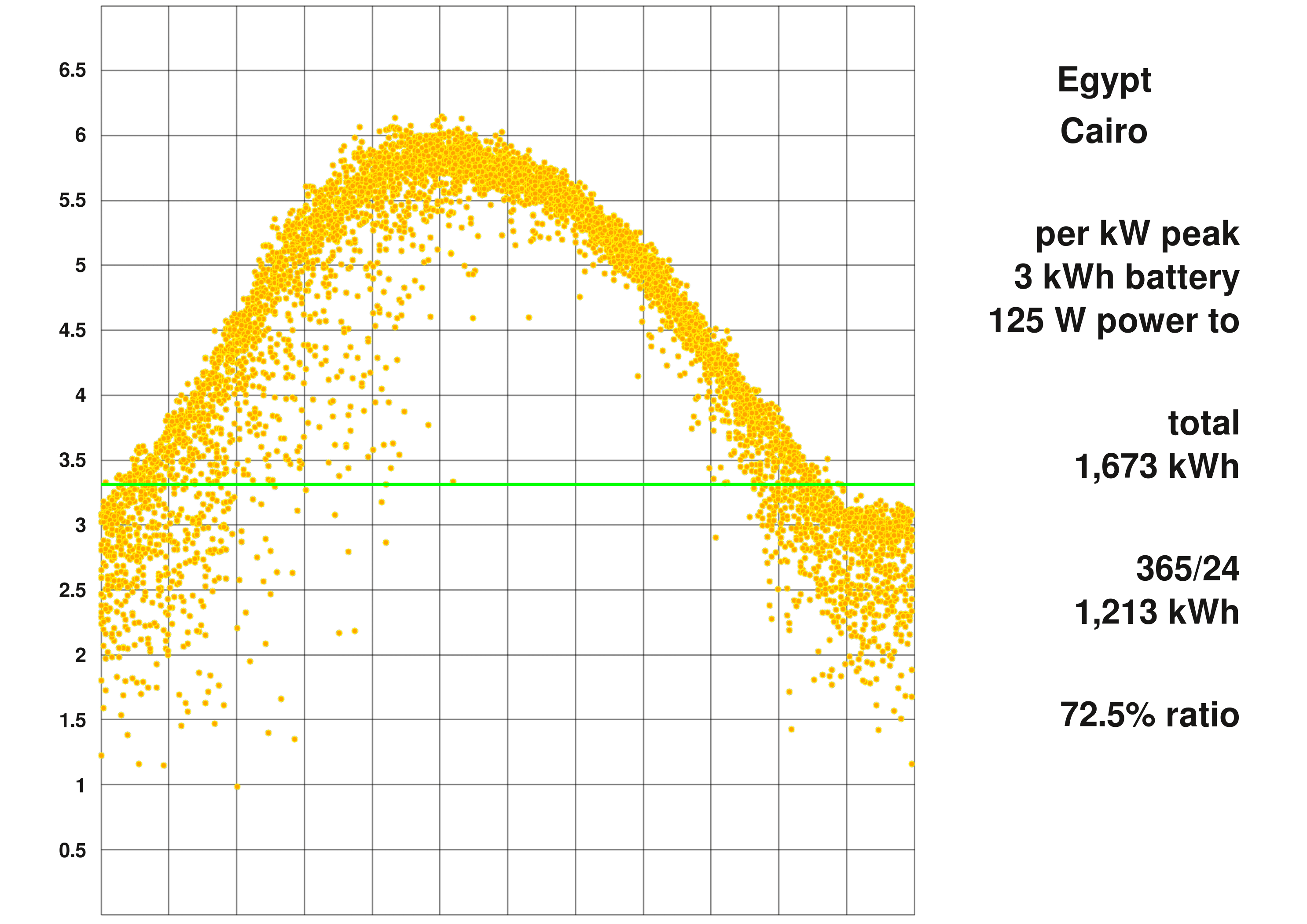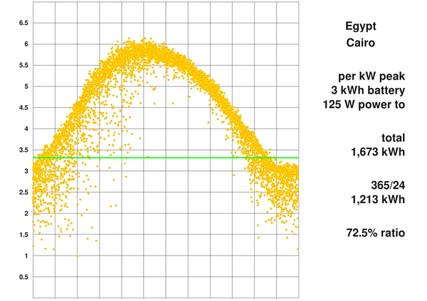 860kWh/kW 피크의 적은 수확량에서 381kWh 365/24 전기만 남습니다. 여기서 분명한 것은 중앙 집중식 대규모 기술을 사용하거나 풍력, 고전압 그리드와 같은 다른 형태의 에너지를 사용하는 것이 필요하고 경제적이라는 것입니다.